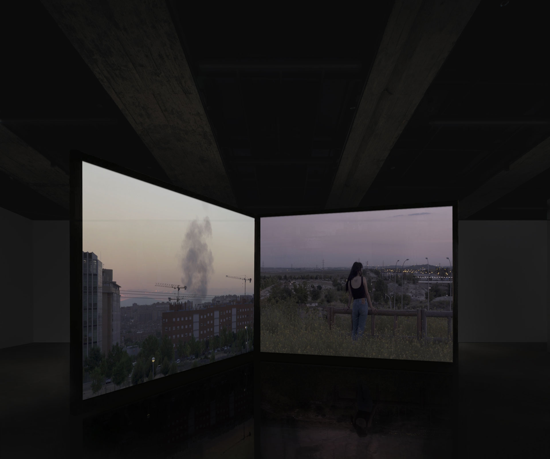 Drifting against the trend, from the city to its outskirts, the actors dissolve into a landscape that reflects their inner selves. Here, on the edges of Madrid (Valdecarros), they are literally trying to ‘form a body’ together and express their desire to move freely, despite the boredom, in urban and generic spaces with seemingly disembodied architecture.